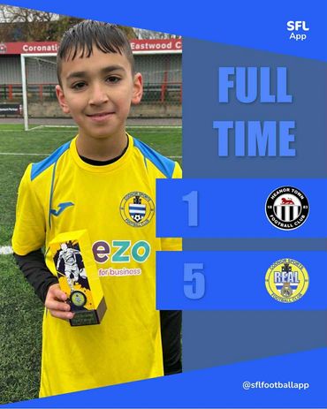 REAL HIT TOP FORM IN DOMINANT DISPLAY YEL Winter league competitive fixture Despite all the rain the past few days both teams were eager to play and luckily found a 4g pitch available. Earlier in the season Heanor had ran out victors with a 1-0 on the opening day of the season despite many efforts and good play from Codnor. Today it was a chance to hopefully get a couple of goals and lift Real into the top 2 going into the final round of fixtures and hopefully find a way to a league play off for promotion. The game started with some brilliant play from Codnor and some superb passing from Stan who was brilliant on the left throughout the game and Freddie on the right who covered a lot of yards. Bobby was calm at the back and travelled well with the ball whilst always being touch tight to the Heanor striker. Robbie was quick to intercept and loose balls and always looked to play forward. Codnor’s pressure then told when Harry was first to react to a loose ball and fired home his fifth of the season with a cracking right foot shot into the bottom corner. Oliver was close to turning in Harry’s next shot that hit the bar, as it just managed to squirm away from the poaching Oliver. A brief scare for Codnor when Heanor rattled the bar and a couple of good stops from Lukas as the hosts were beginning to get a look in. Teddy came on on the left and looked dangerous and also battled so well. Harrison came on on the right and made some really good runs, carrying on from last week but unfortunately suffered a stinging bum when Bobbys drilled shot was flying towards him. The second Codnor goal came when Reggie picked up the ball outside the box and his shot flew into the goal which probably wouldn’t have been saved by an adult, it was a bullet. Half time and Codnor were playing some good stuff, whilst Heanor were trying to unlock the Real defence with getting more players forward. Second half and Oliver started the charge and made some great presses stopping Heanor from coming out at the back. That pressing was rewarded when Harrison finished brilliantly past the Heanor keeper. Heanor’s keeper to his credit jumped back to his feet and told his teammates it didn’t matter and to keep going Codnor were still using the ball well and passing the ball around using each other. Stan was having so much joy on the left and worked well with Freddie in centre midfield. Freddie and Stan had a couple of goes at goal that were either saved or just went wide. Teddy was playing on the right and he hit the post and also had one blocked by the defender. That goal is coming Teddy, keep believing lad. More good defending at the back from Bobby and now Reggie stopped any Heanor attack. Bobby was calm on the ball and even when he stepped out looked to cross or pass. Sadly though the cleansheet went when the ball went across the Codnor box to the back post as the attacker finished past Lukas. Lukas made a couple of good saves late in the game and even sat on the ball for one save. Some very good handling and commanding his box also. Robbie was really good on the ball and was always on hand for a pass and delivered some good balls forward. Late on Harrison grabbed his second of the game with another good finish before Reggie fired in his second also. Both really good finishes and fully deserved their braces. Heanor had a couple of last minute chances but it wasn’t to be for them but put up a real good fight. Codnor were ruthless with their finishing and the Heanor coach commented on how well the lads struck the ball. The result pushed Codnor to joint second with a game remaining and hoping today’s re arranged other games go in their favour. Potm- Reggie, some great tackles, a couple of good goals and a big smile. All the lads put in a real shift today and that team spirit is getting so strong, the lads are only getting better and better. The big improvements in front of goal and the defensive work are unbelievable. Also the style of play is great to watch, while the lads learn to stay composed on the ball and talk to each other. The lads are proudly sponsored by- Home- Collis Engineering Ltd Away- WNS Electrical Zip top- Sweet Retreat Training kit- Stitchandstlye Printing Embroidery Coats- Stitch and Style Printing and Embroidery